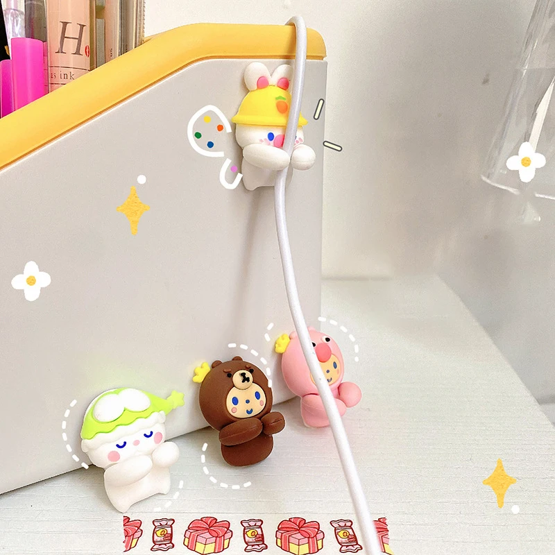 2 stücke kawaii cartoon kabel organisator niedlich usb ladegerät datenleitung draht wand haken kabel halter kopfhörer kabel wickler schreibtisch organisator