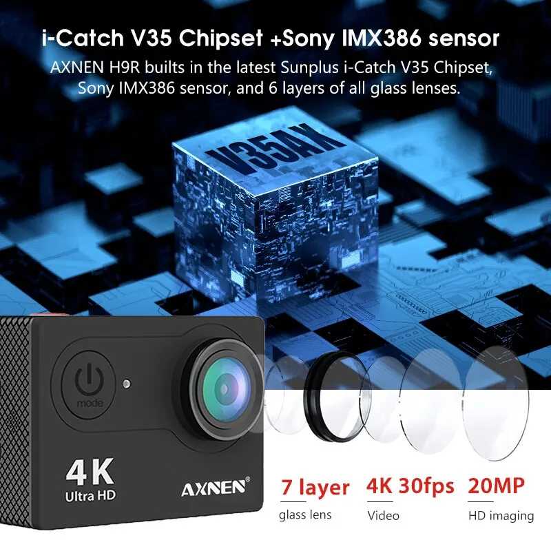 Axnen h9r action kamera 4k 30fps eis p60fps wifi 2 zoll bildschirm unterwasser wasserdichter helm motorrad video aufzeichnung sport cam
