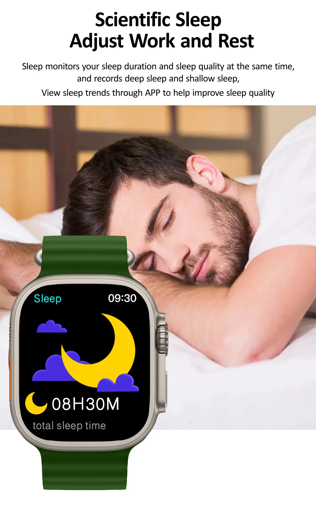 Schlaf überwachung, Schlaf trends durch App anzeigen, um die Schlaf qualität zu verbessern.