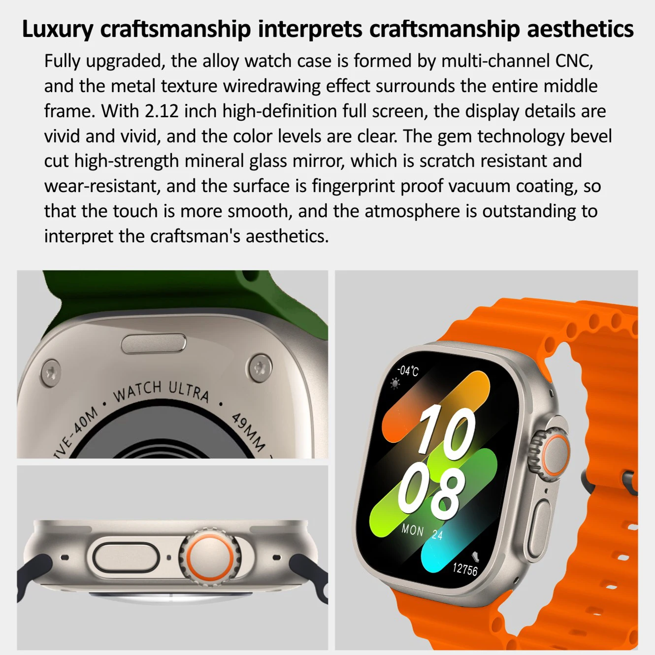 2,12 Zoll neuer ultra-gekrümmter hoch auflösender, umfassender Amoled-Bildschirm, CNC-Integral formteil, 485*520 Super-High-Definition-Auflösung.