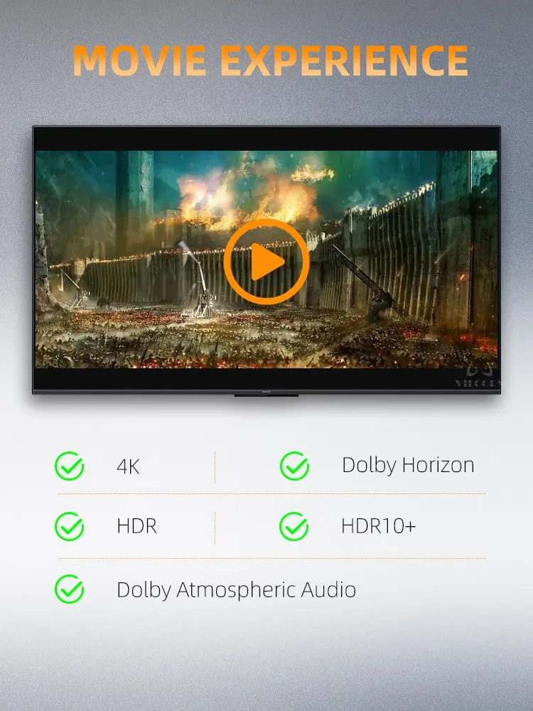 ✅Funktionen: Unterstützung WiFi-Verbindung, Internet, auch Unterstützung für die Verwendung von Netflix, Google Store, YouTube, etc., Unterstützung Dolby Vision, hdr, hdr10 + und immer sive Dolby Atmosphäre Audio. Ausgestattet mit TV-Fernbedienung.