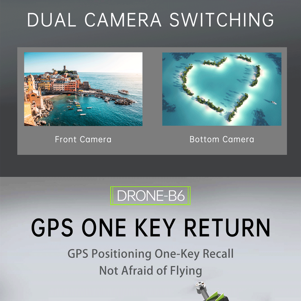 1. die Frontlinse ist mit Weitwinkel 8k High-Definition-WLAN platziert, und die optische Fluss High-Definition-Objektiv an der Unterseite kann den Kamera winkel wechseln. Das Servo-Gimbal-Design erhöht die Stabilität, und die elektronische Bilds tabilisierung wird hinzugefügt, um die Bild linien klarer zu machen